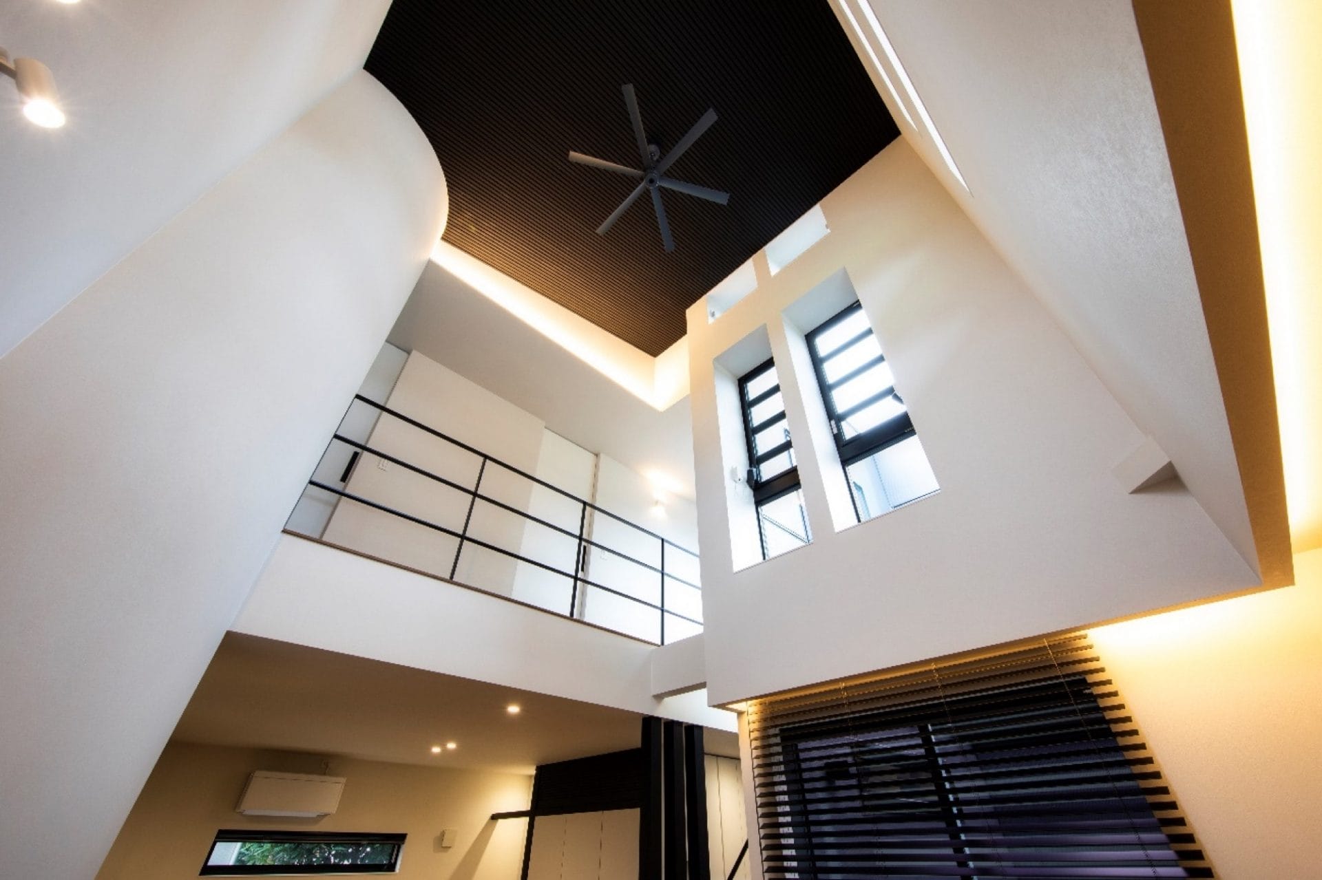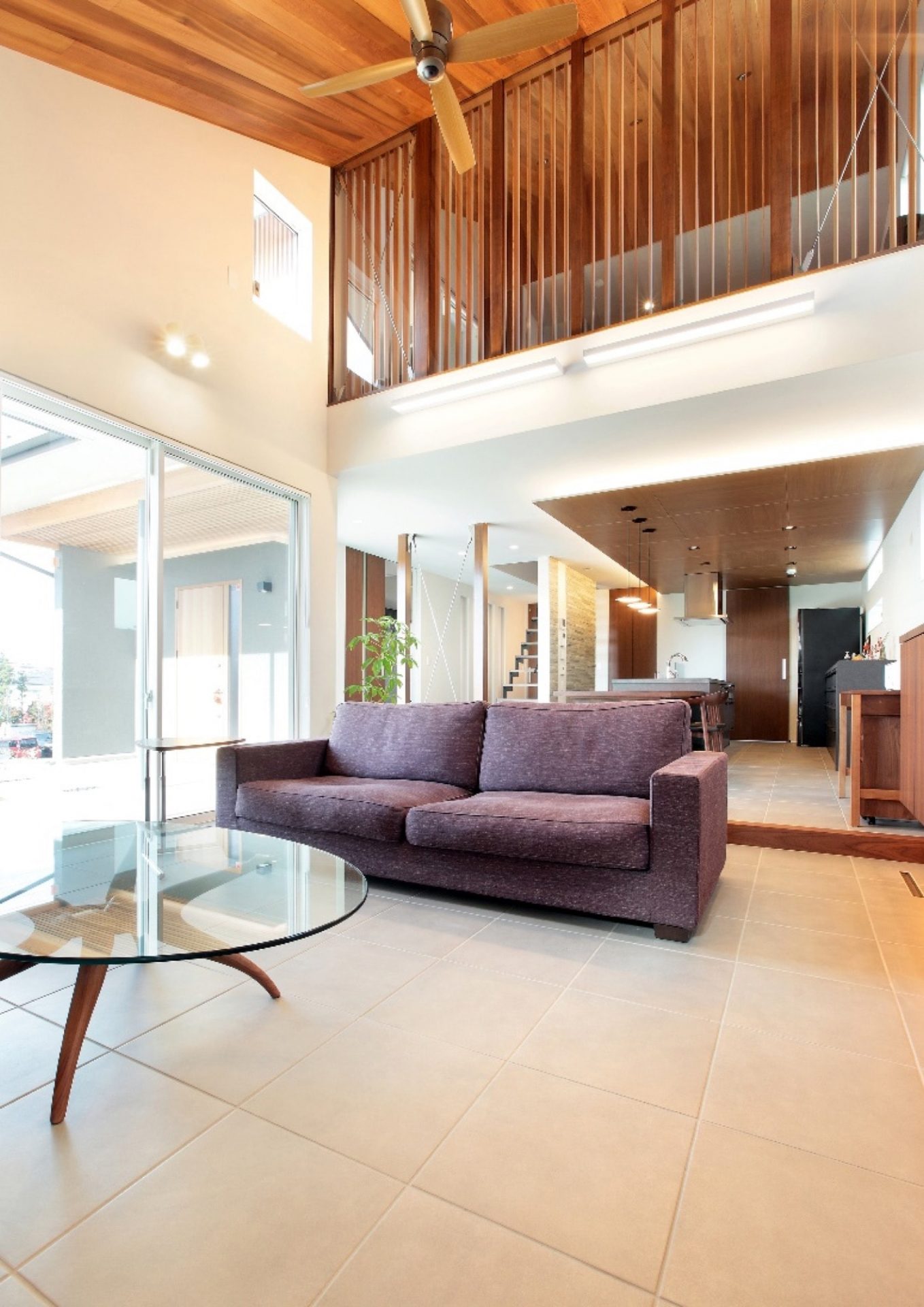 吹き抜けには必ずシーリングファンがついていて絶えず空気を循環させ、室内温度のムラを少なくしています。そのため、体感的にも「暑い、寒い」を感じにくくなります。