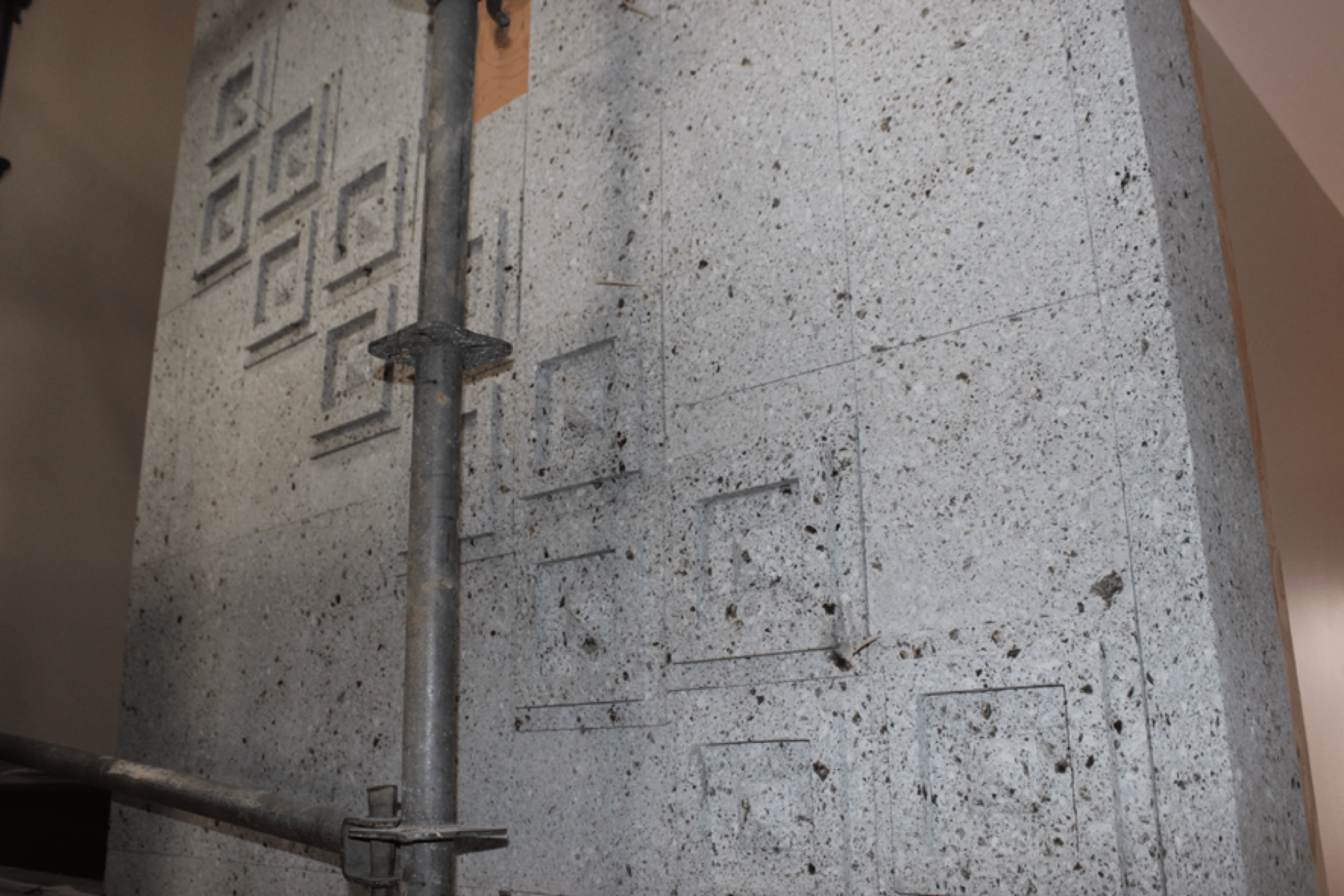 職人さんが1枚1枚手掘りでつくったという大谷石のパネル!