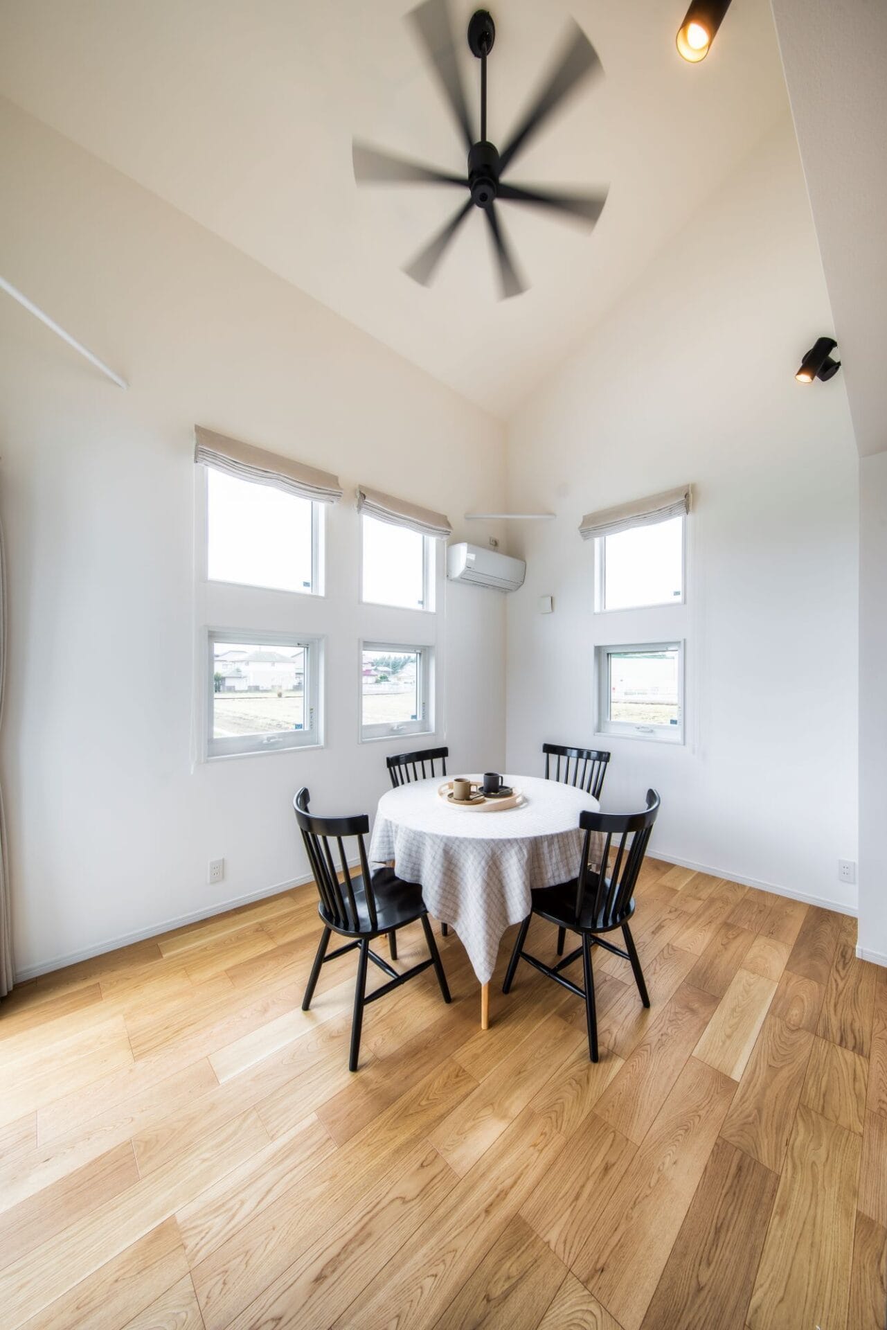 窓の大きさや高さなどを計算し、効果的な風の通り道を確保します。通風のためにはお部屋に2つ窓をつくり、風が抜けるようにしてあげると健康にもいいといわれています。