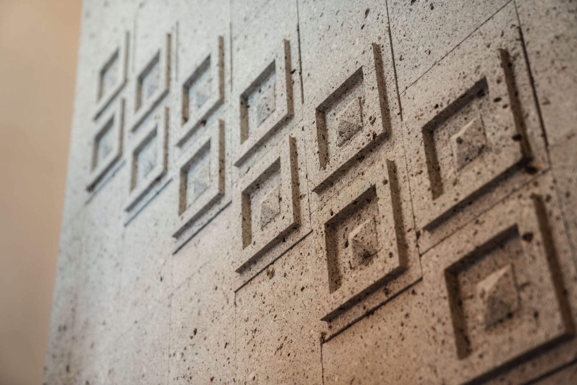 壁の模様は職人さんが一枚一枚彫ったオリジナル。ALMAの高級な雰囲気にふさわしいデザインです。