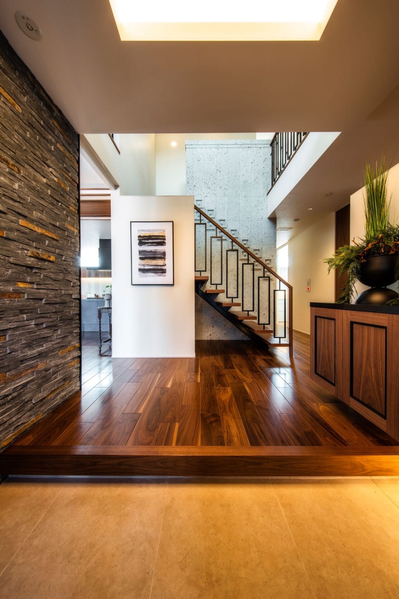 おしゃれで高級感あふれるデザイン階段と玄関ホールをご紹介します。
