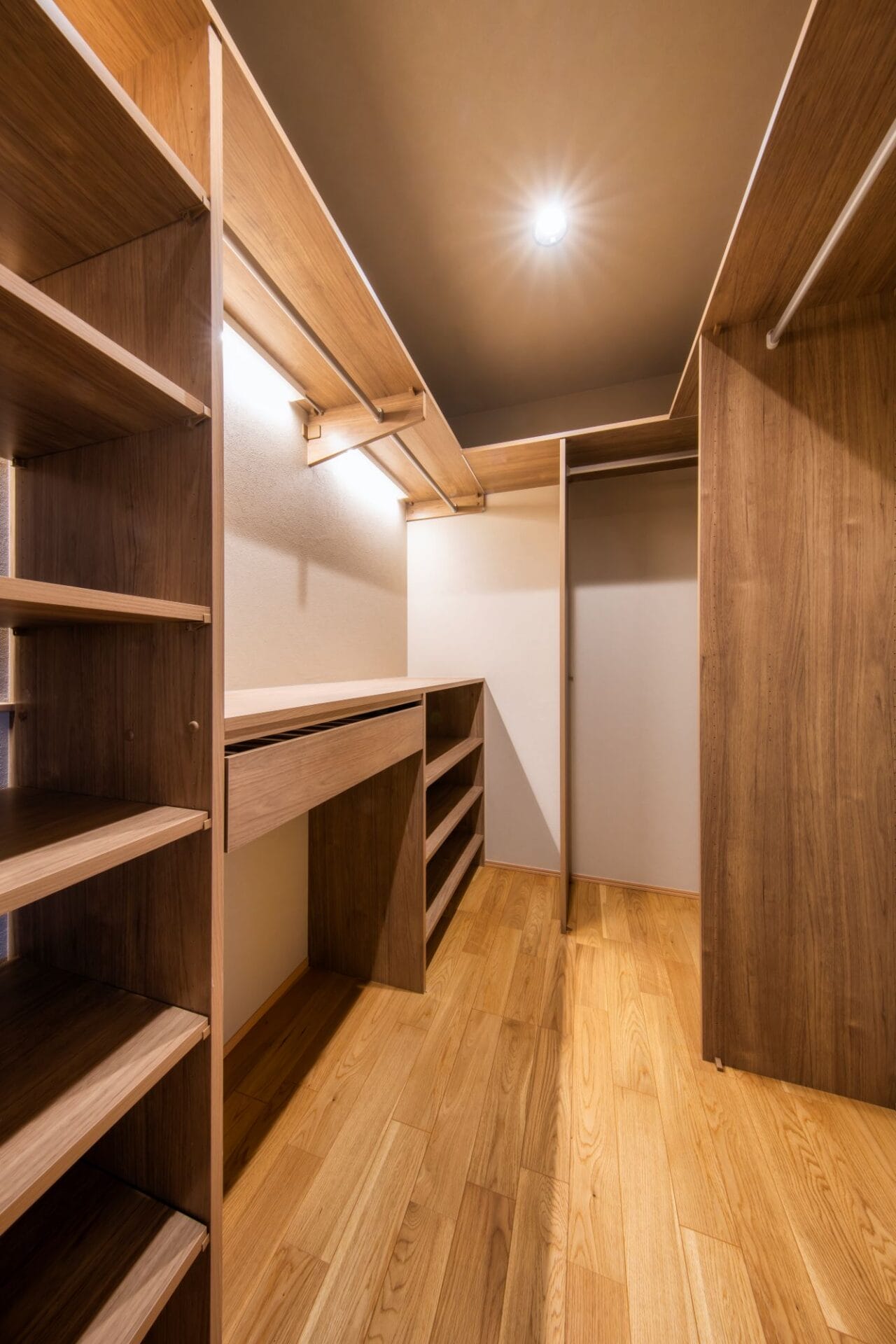 ファミリークローゼットが隣にあれば、たたんだらすぐにしまえてお部屋のきれいもキープしやすいです♪