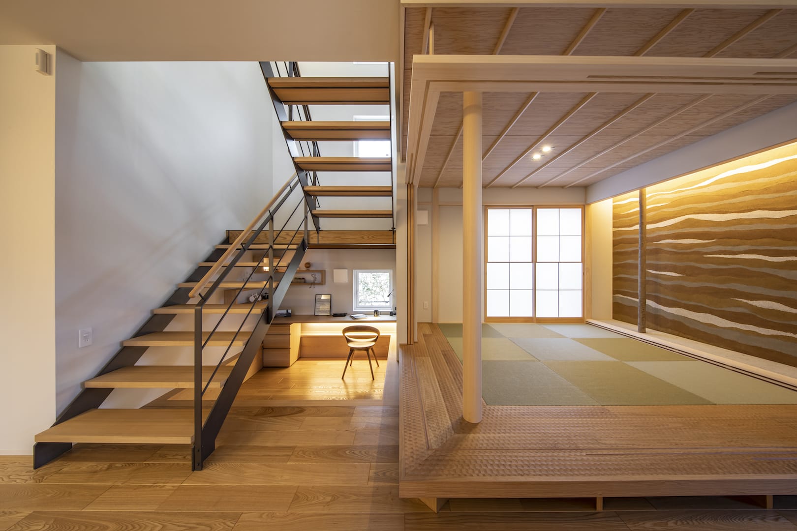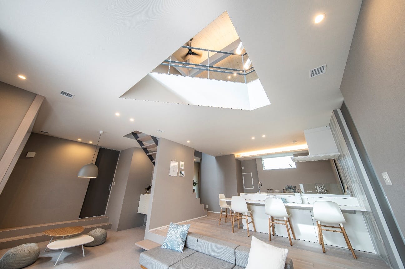 スタイリッシュでありながらも家事動線に配慮したつくり。スキップフロアや効果的な吹き抜けによる空間の広がり感・つながり感・解放感を表現しました。