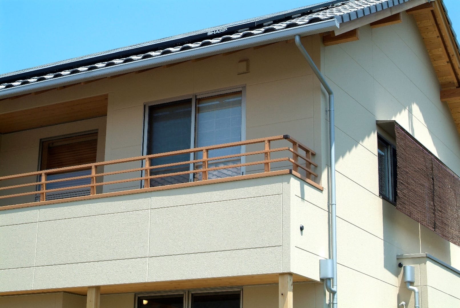 当社では夏の日射を防ぐため、南側の軒を深く出すご提案をしています。高さに対して30%くらい出すと、夏の高い陽は室内に入ってきません。