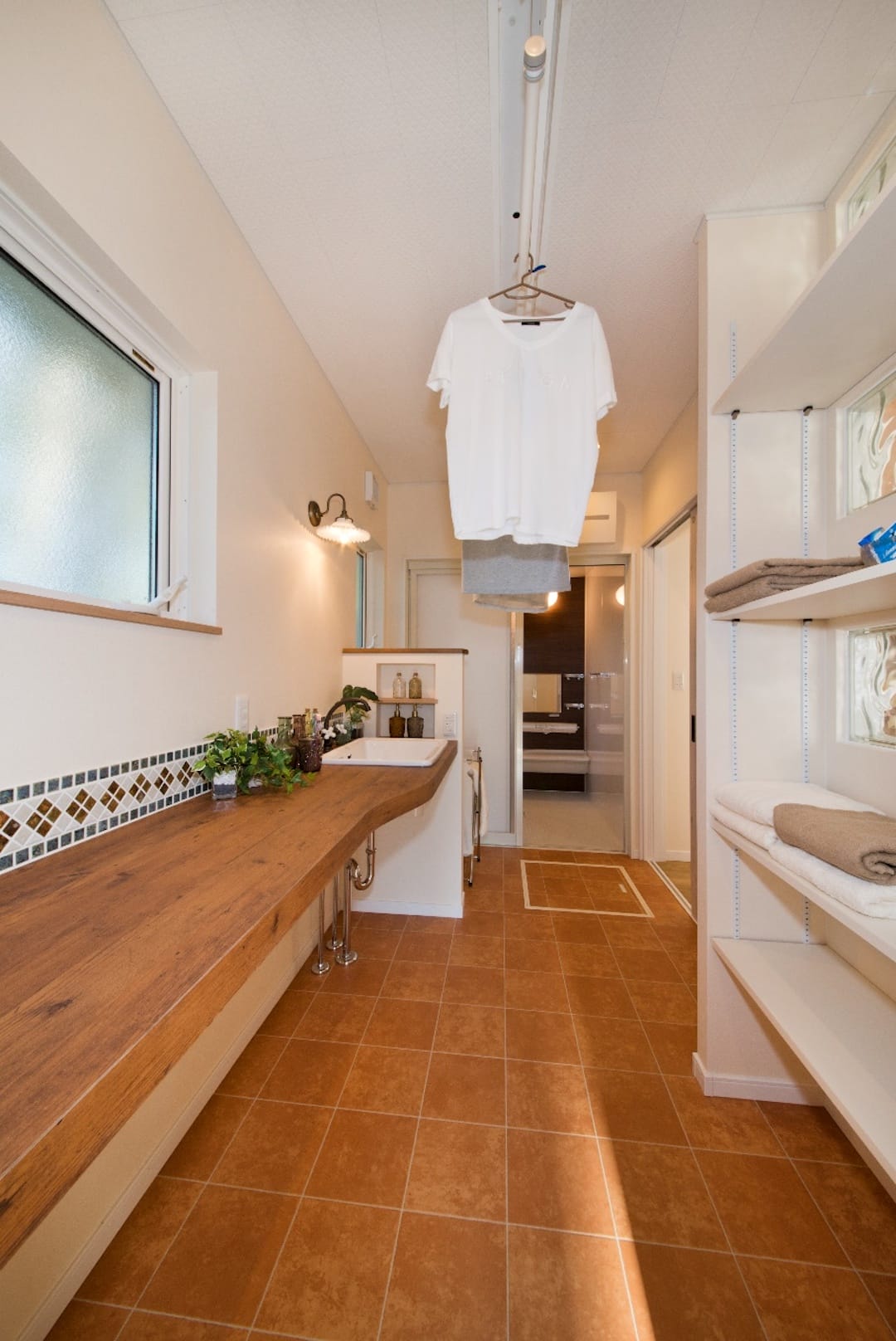 雨が吹き込みやすい方角を計算して、急な雨でも慌てなくて済むようにランドリールームをつくっています。