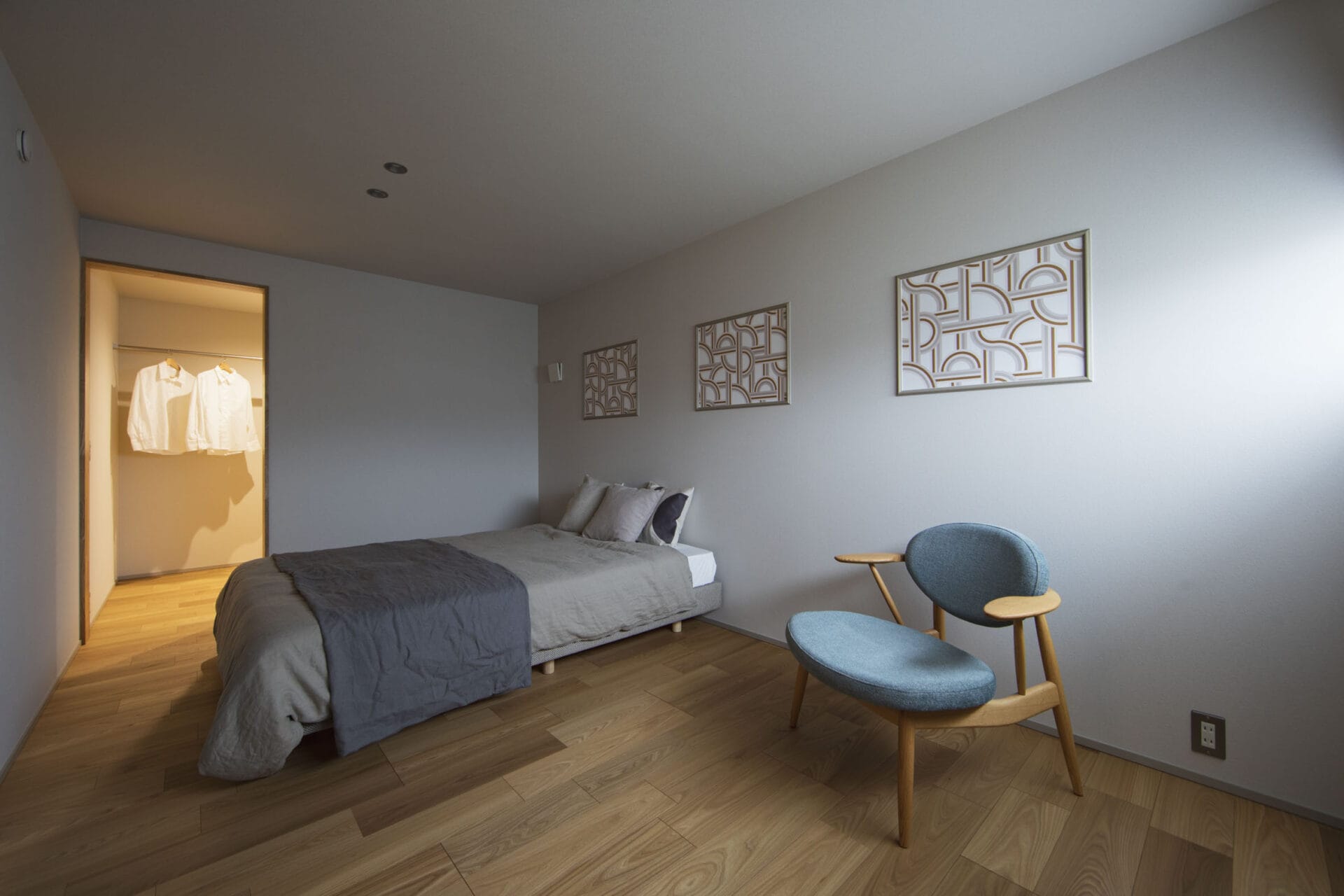 前回のレポートでちらっとお見せしたこちらのお部屋は…寝室でした!デザイン壁がすてき♪ウォークインクローゼット完備で収納もおまかせです。