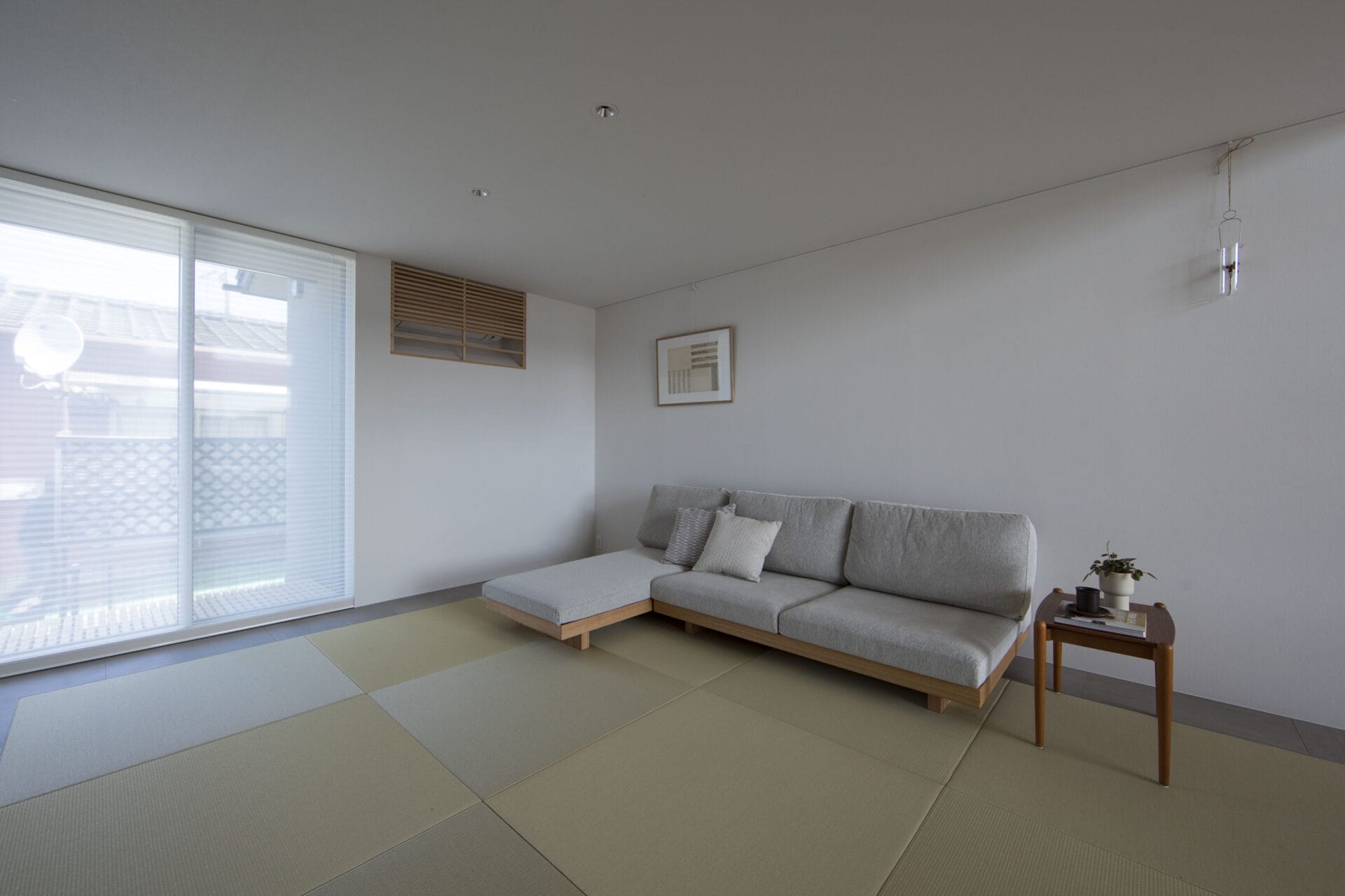 さらに小上がりの畳リビング+ローソファーを採用することで視界が低くなり、天井を高く感じてゆったりとしたひとときが過ごせます。