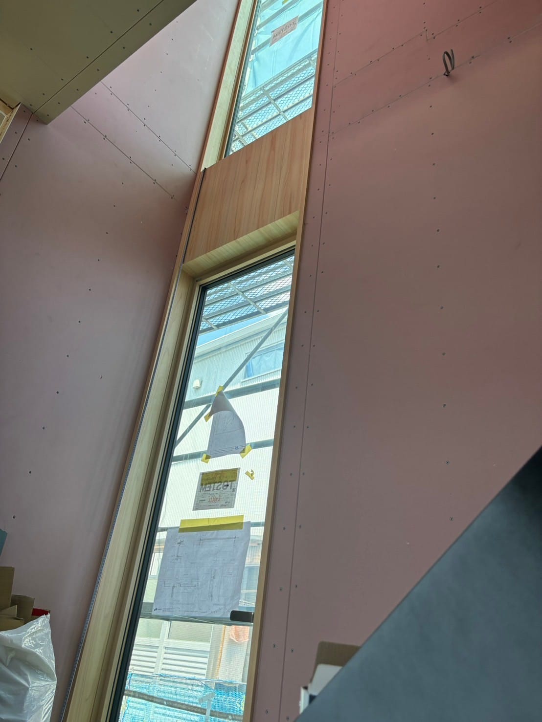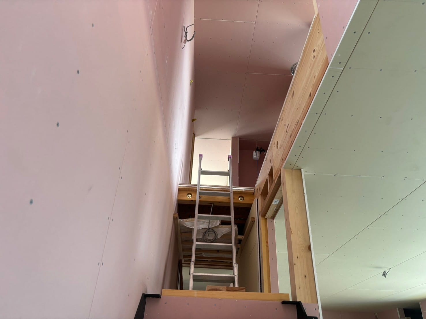 こちらにはこれから階段が取りつけられます。吹き抜けにかかる階段で、デザインにもこだわっており、仕上がりが楽しみなポイントのひとつです!