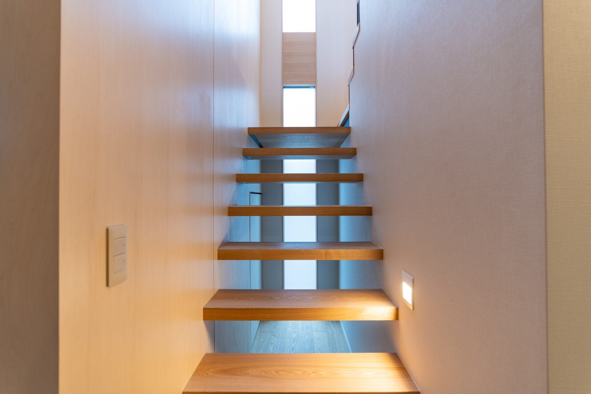 窓から柔らかな光を取り入れる階段。
