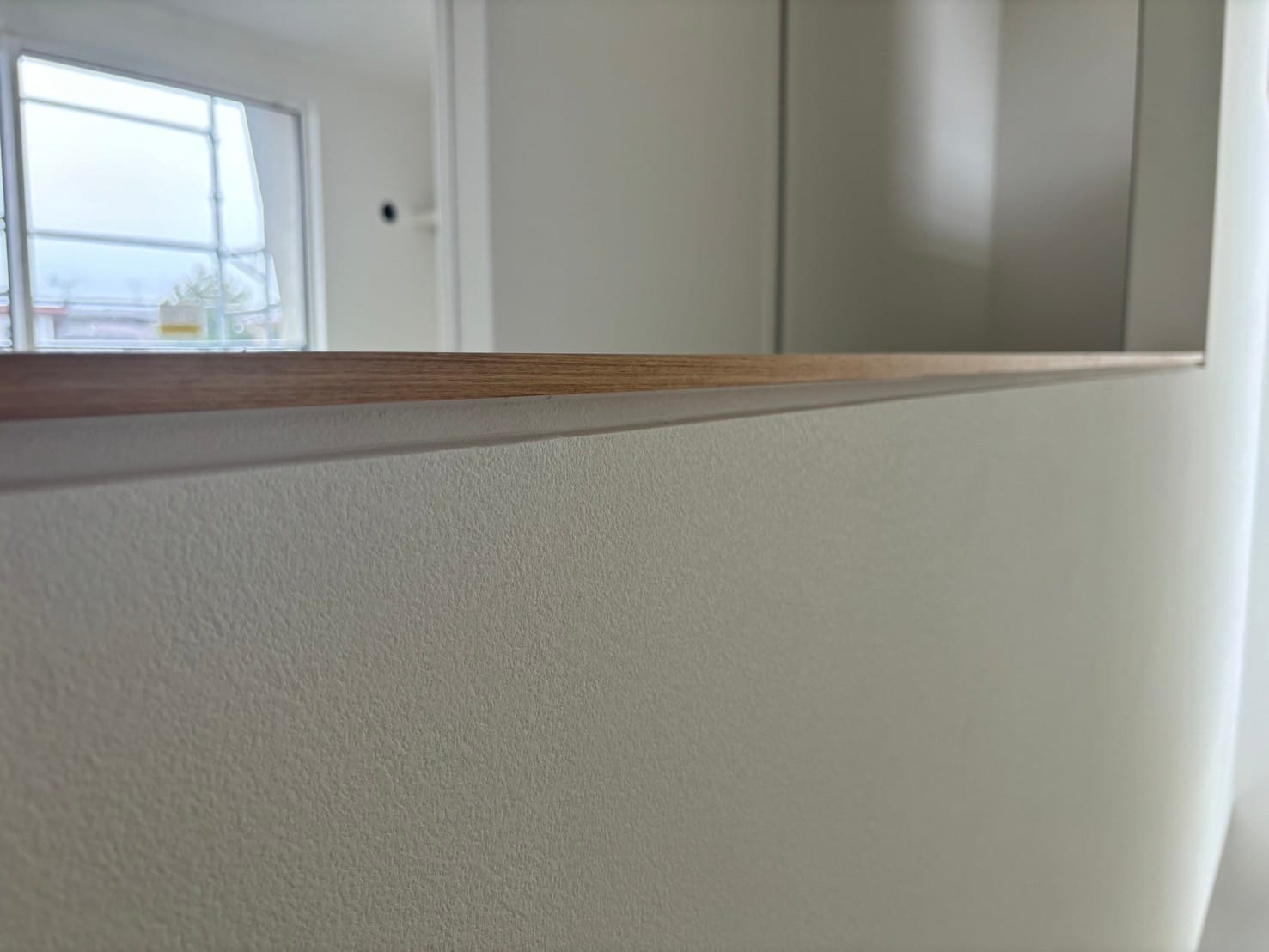 こういった手すりの溝など細かいところにも手を抜きません。とっても丁寧で仕上がりがきれいです。ご見学の際は、見逃しがちな細かなポイントにもご注目くださいね。