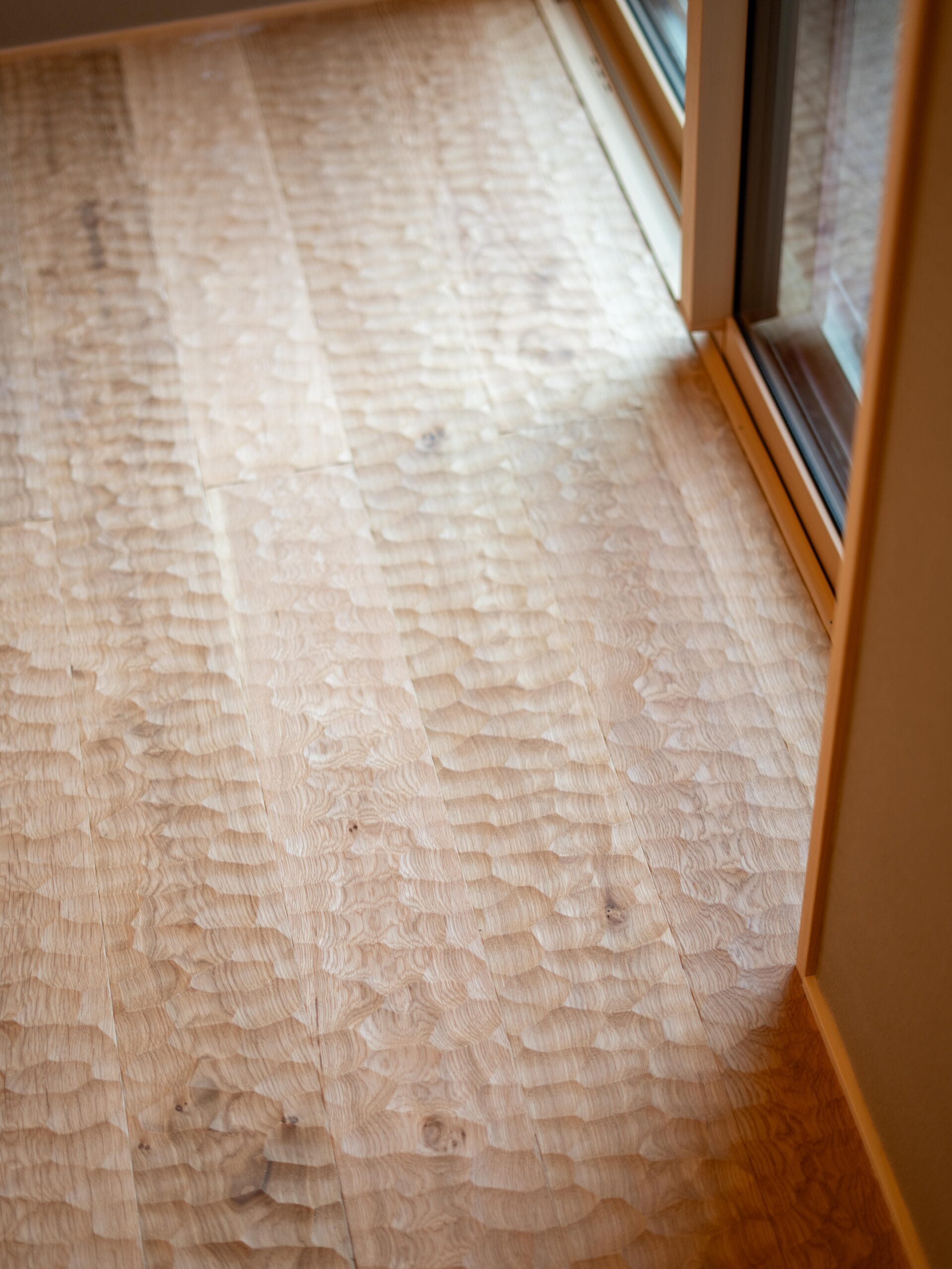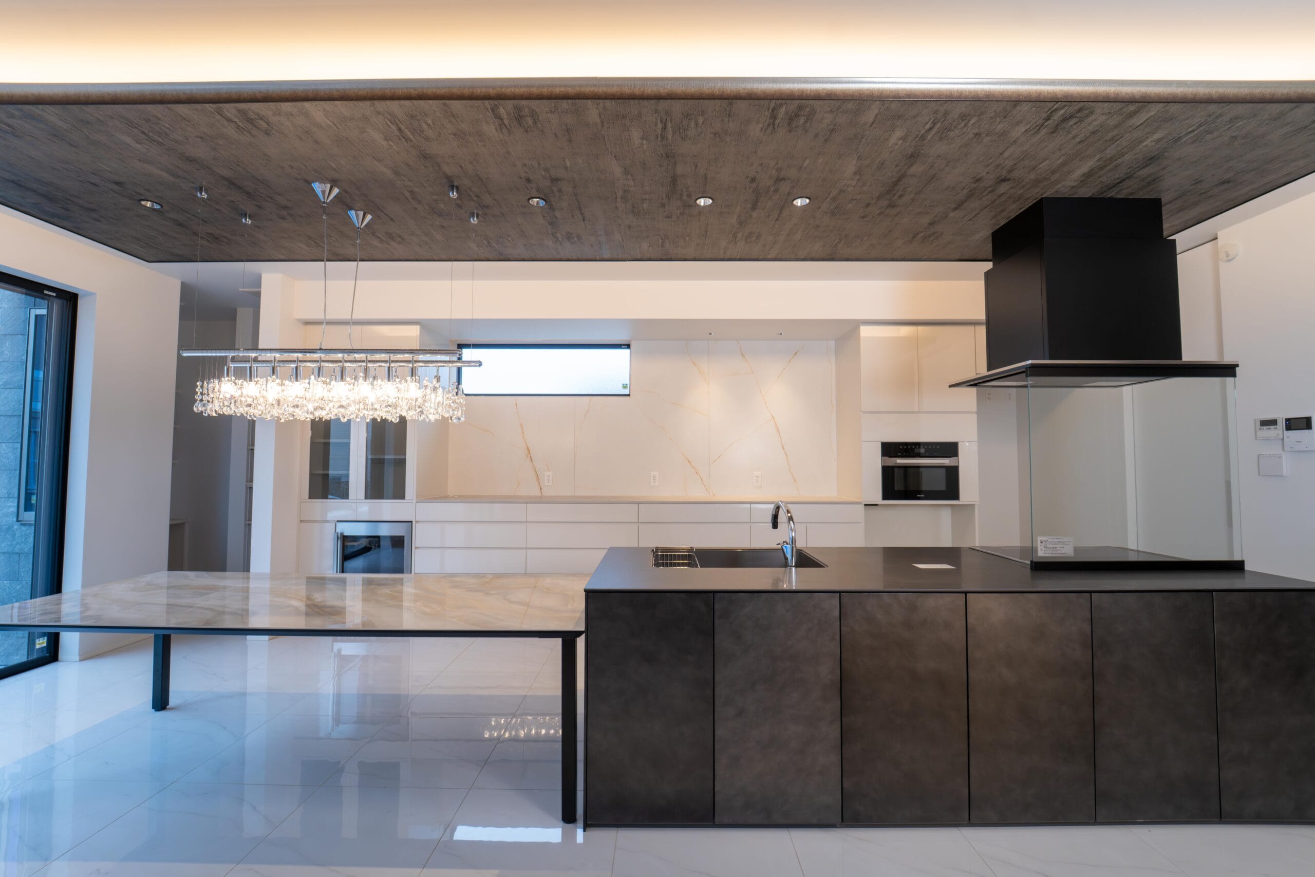 高級感と耐久性を兼ね備えた内装床タイルをリビングに採用。デザイン性だけでなく、タイルと相性の良い床暖房を組み合わせることで、冬でも足元からじんわりとした心地よい温もりを感じられます。夏はひんやりと、一年を通じて快適な質感を体験できます。