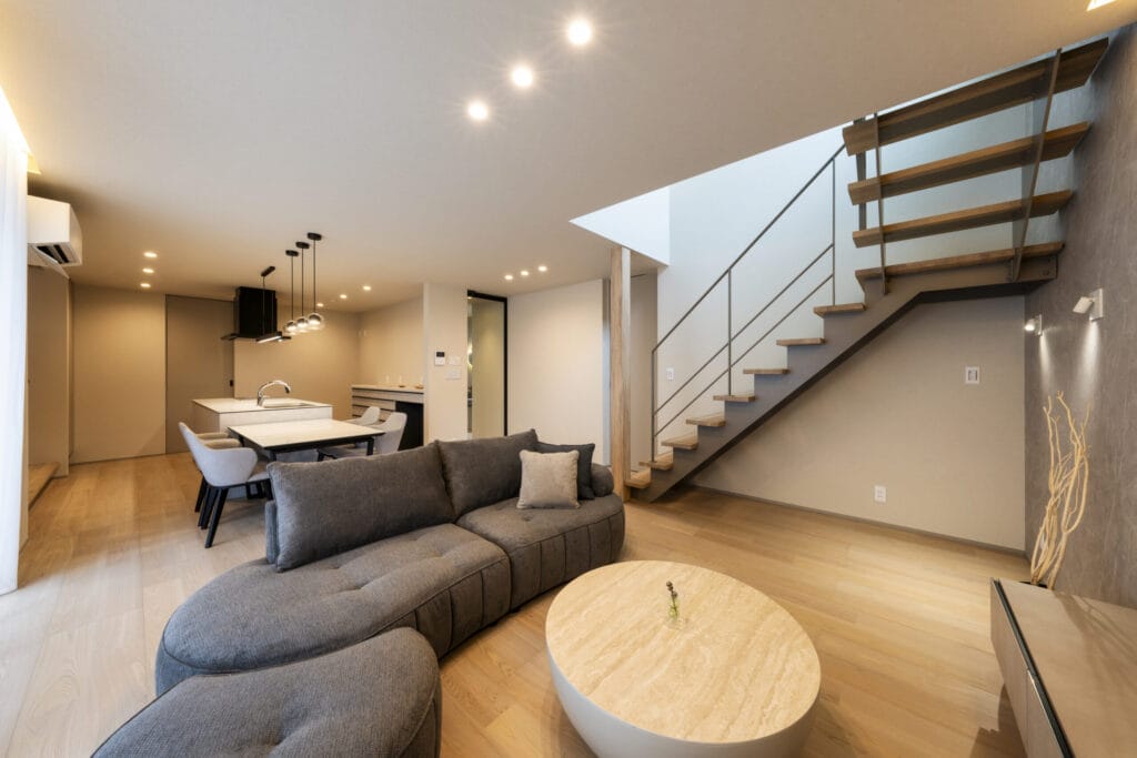 兆-KIZASHI-2 #2階建て #キッチン #シンプルモダン #ナチュラル #ランドリー・洗面 #リビング階段 #塗り壁 #外観 #書斎のある家 #無垢フローリング #造作(洗面・収納等) #間接照明