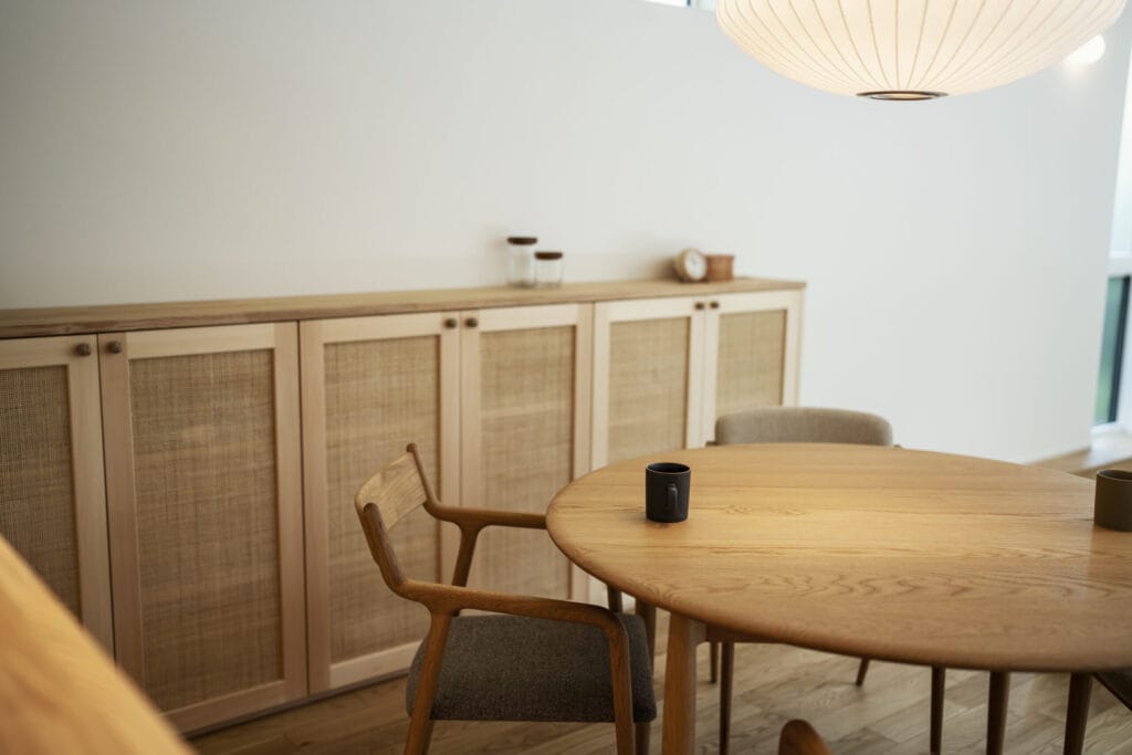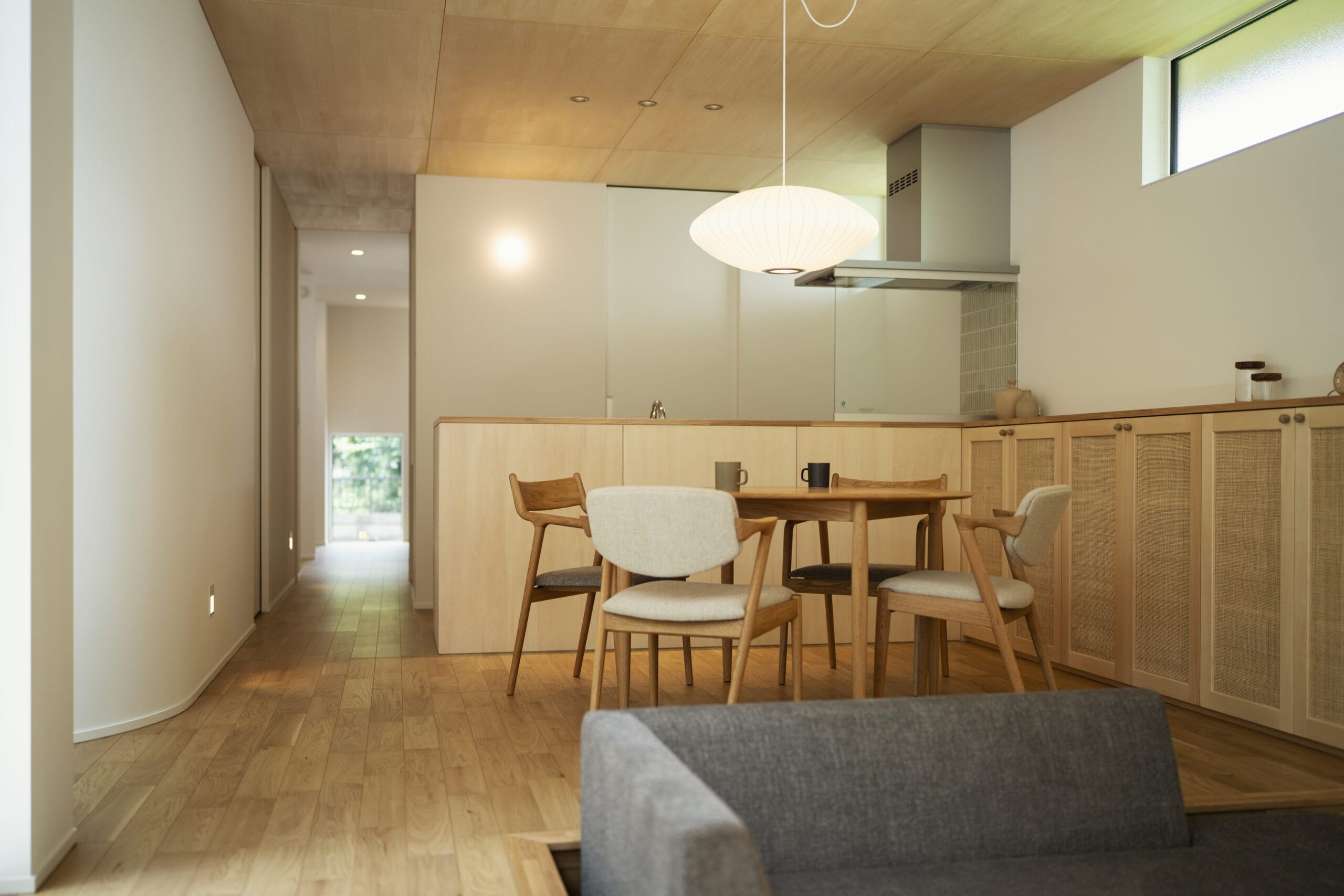 ラタンの建具と優しい色合いに癒され、人目を気にせずに過ごせる、光と影が美しい住まいです。